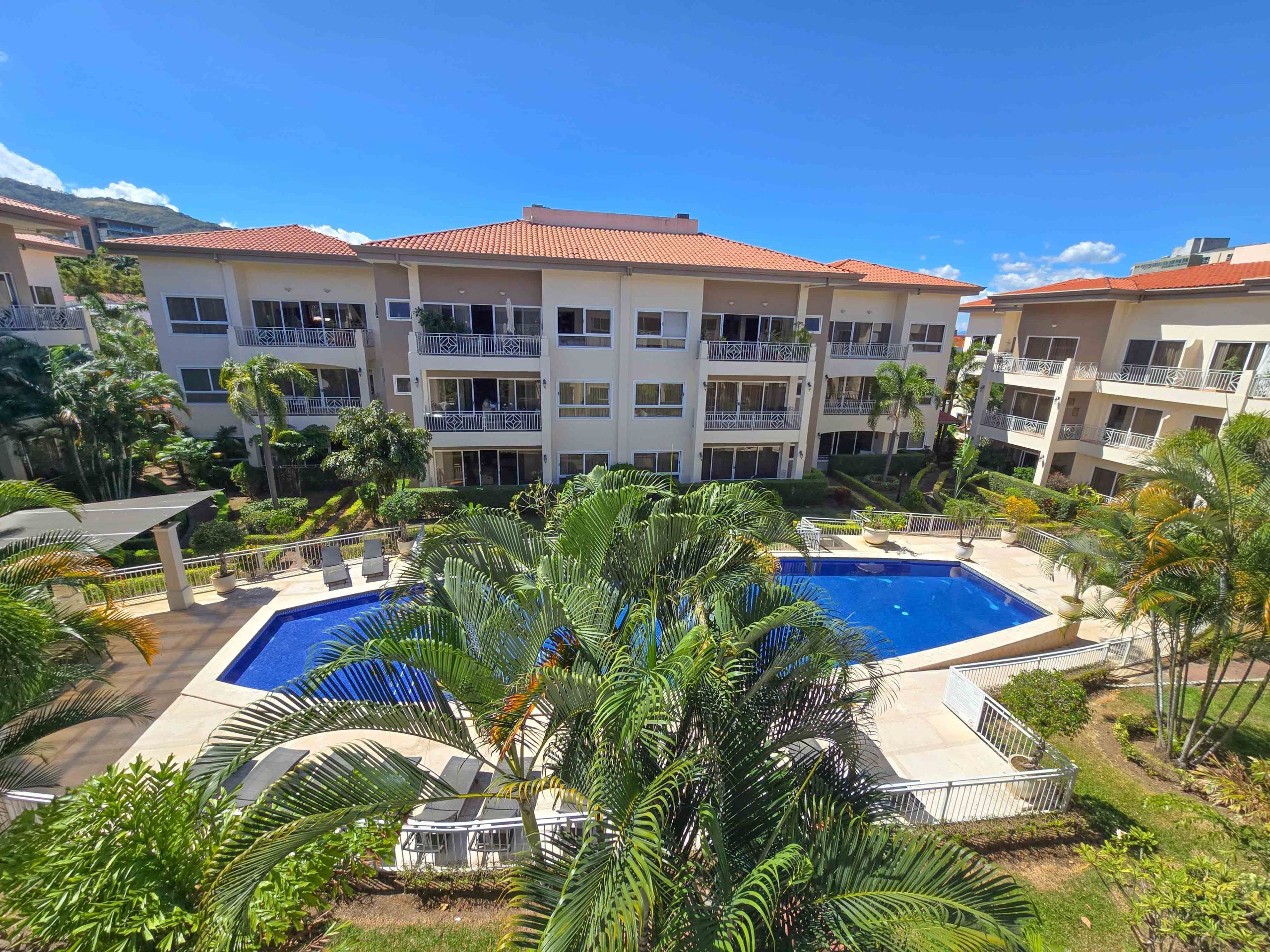Prime location! Fully furnished apartment in the most desirable area of San Rafael Escazu, just minutes from the Costa Rica Country Club, with the best access points. Located on the 3rd and last floor with a large covered terrace and a total of 190 m² of construction, including 2 covered parking spaces and storage unit.
