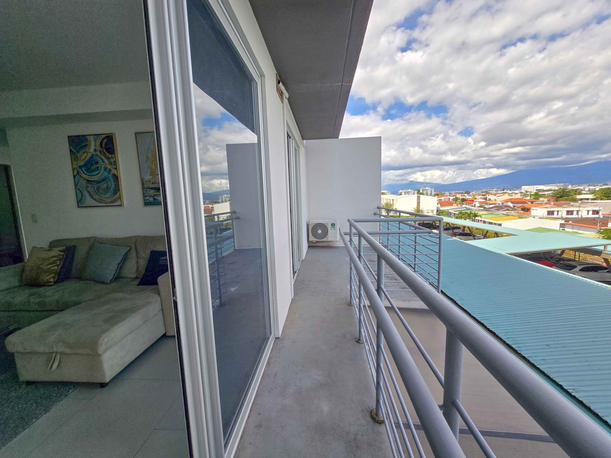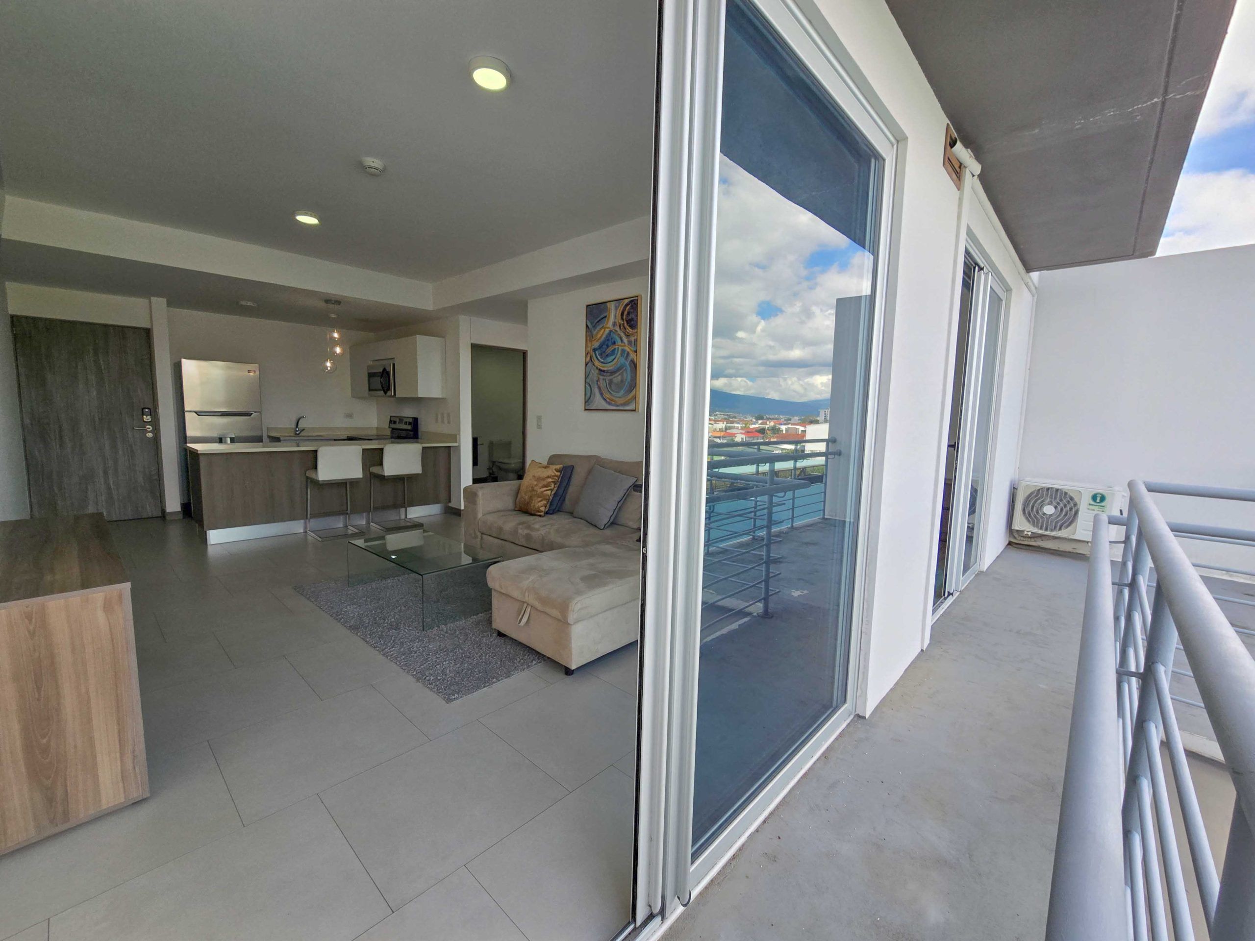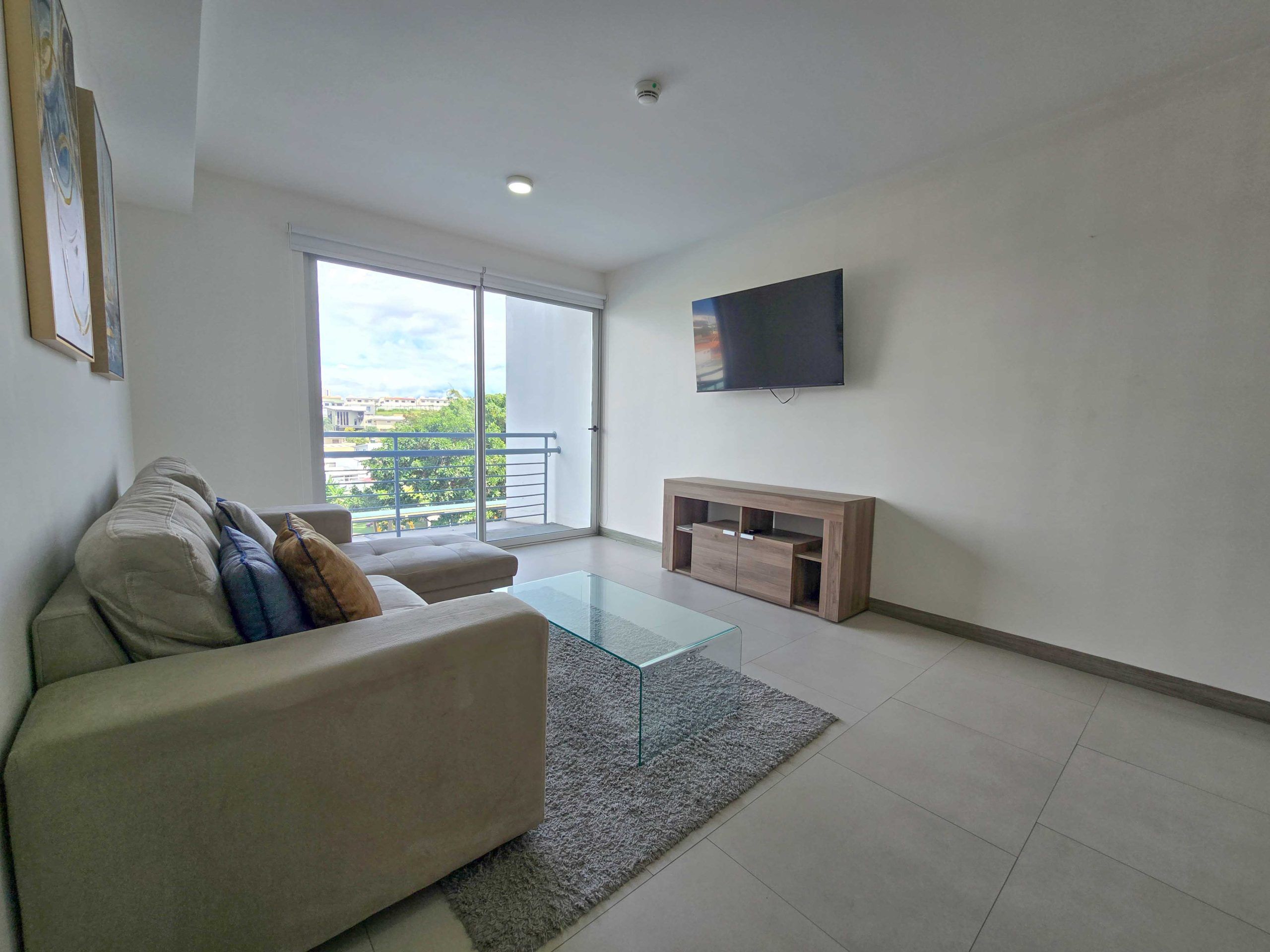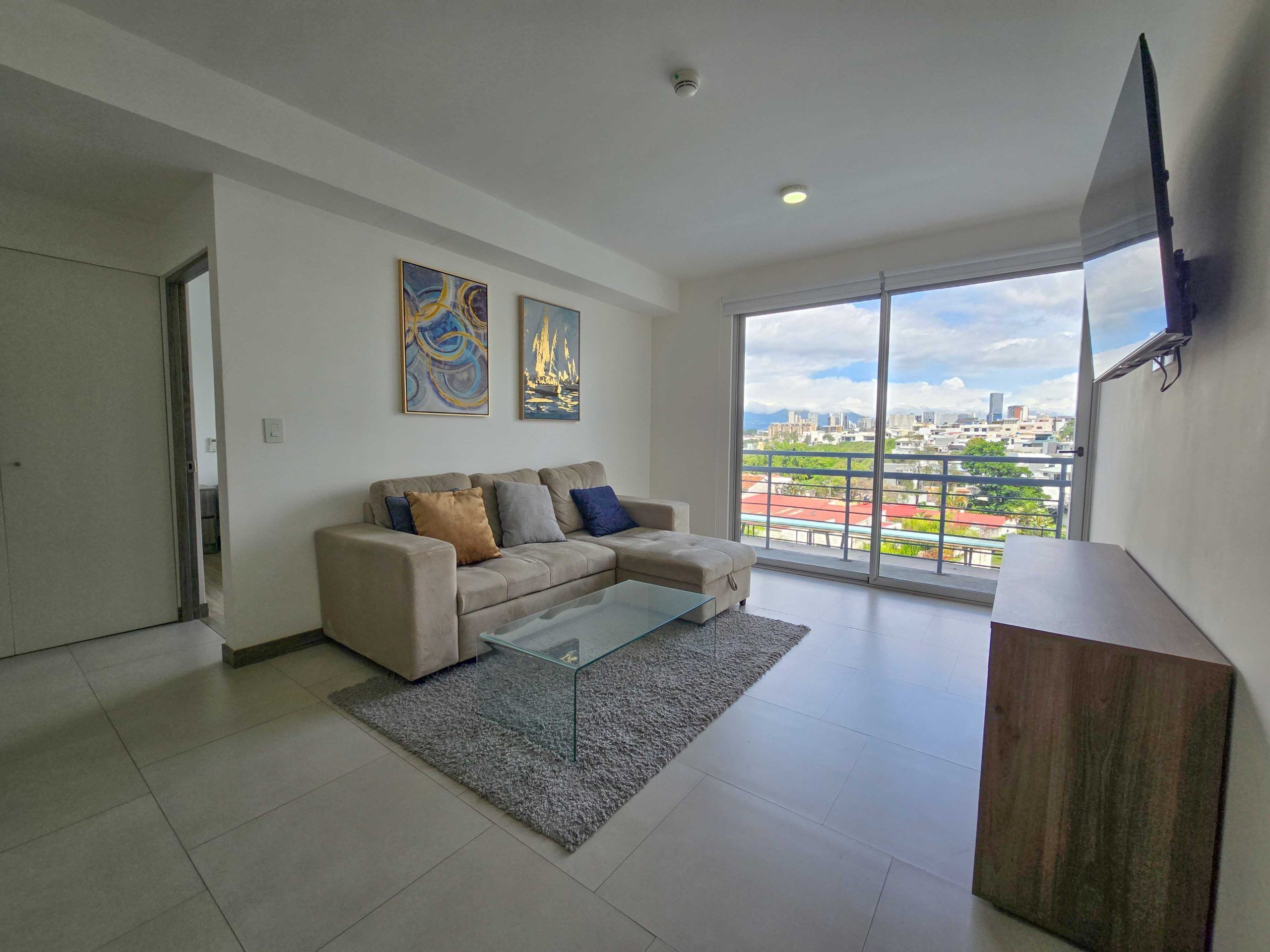 For Sale – Fully furnished apartment with a spacious balcony and beautiful views, located in the modern CAIA condominium in Bello Horizonte, Escazu.