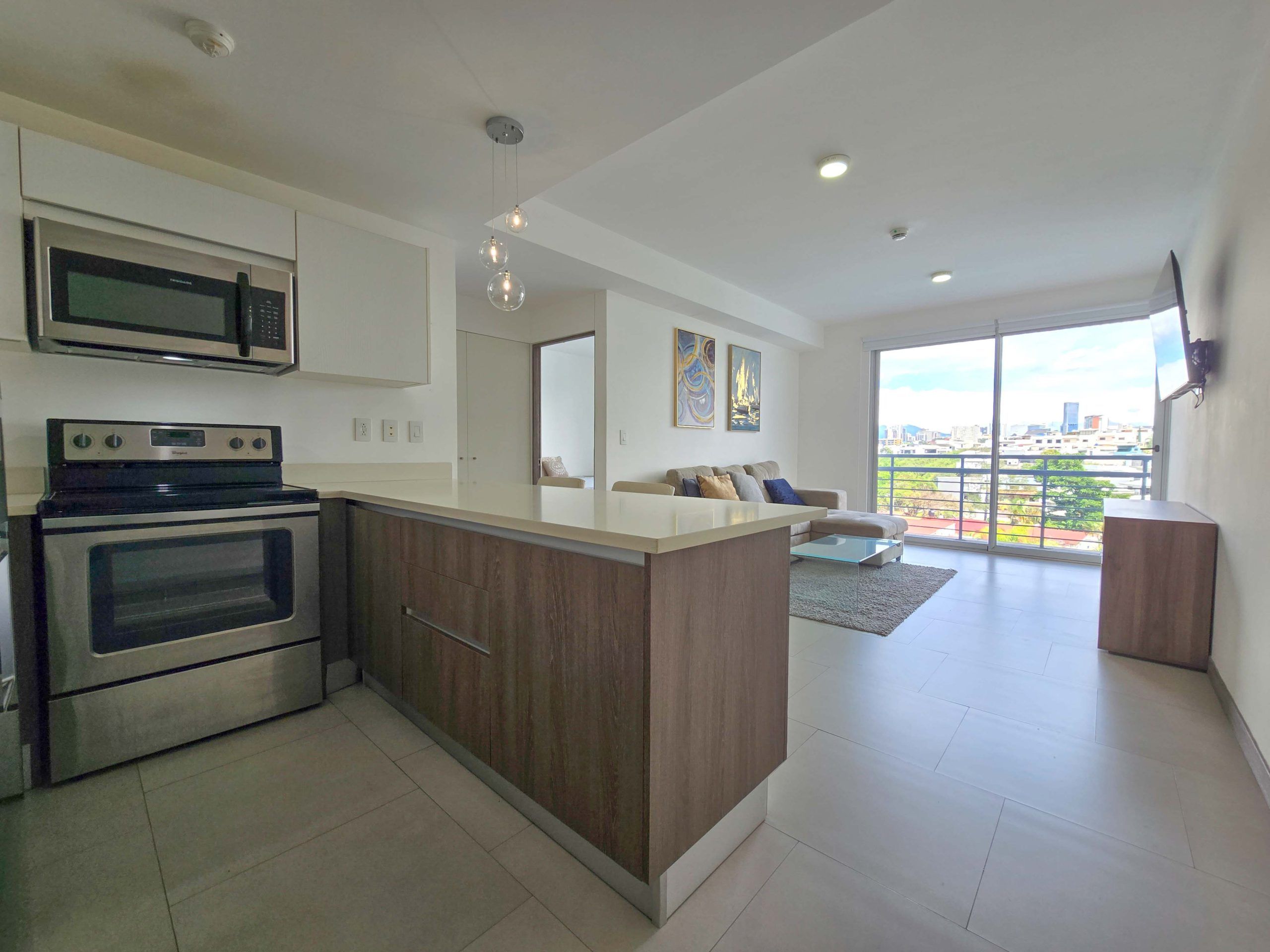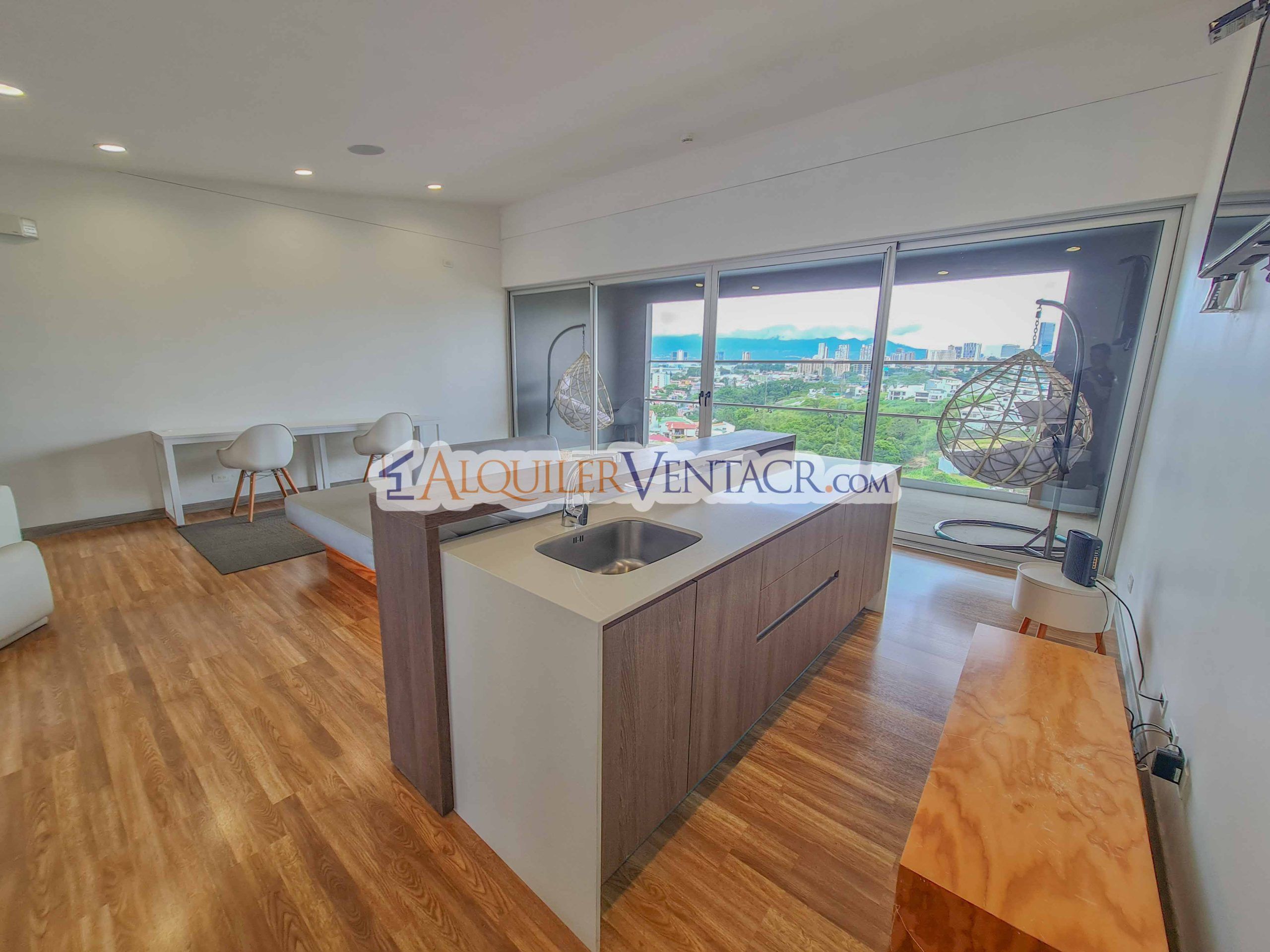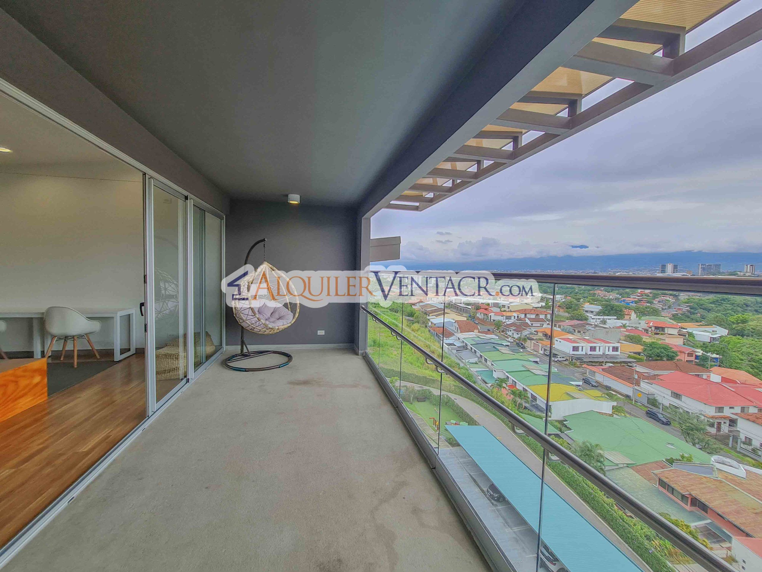For Sale – Fully furnished apartment with a spacious balcony and beautiful views, located in the modern CAIA condominium in Bello Horizonte, Escazu.