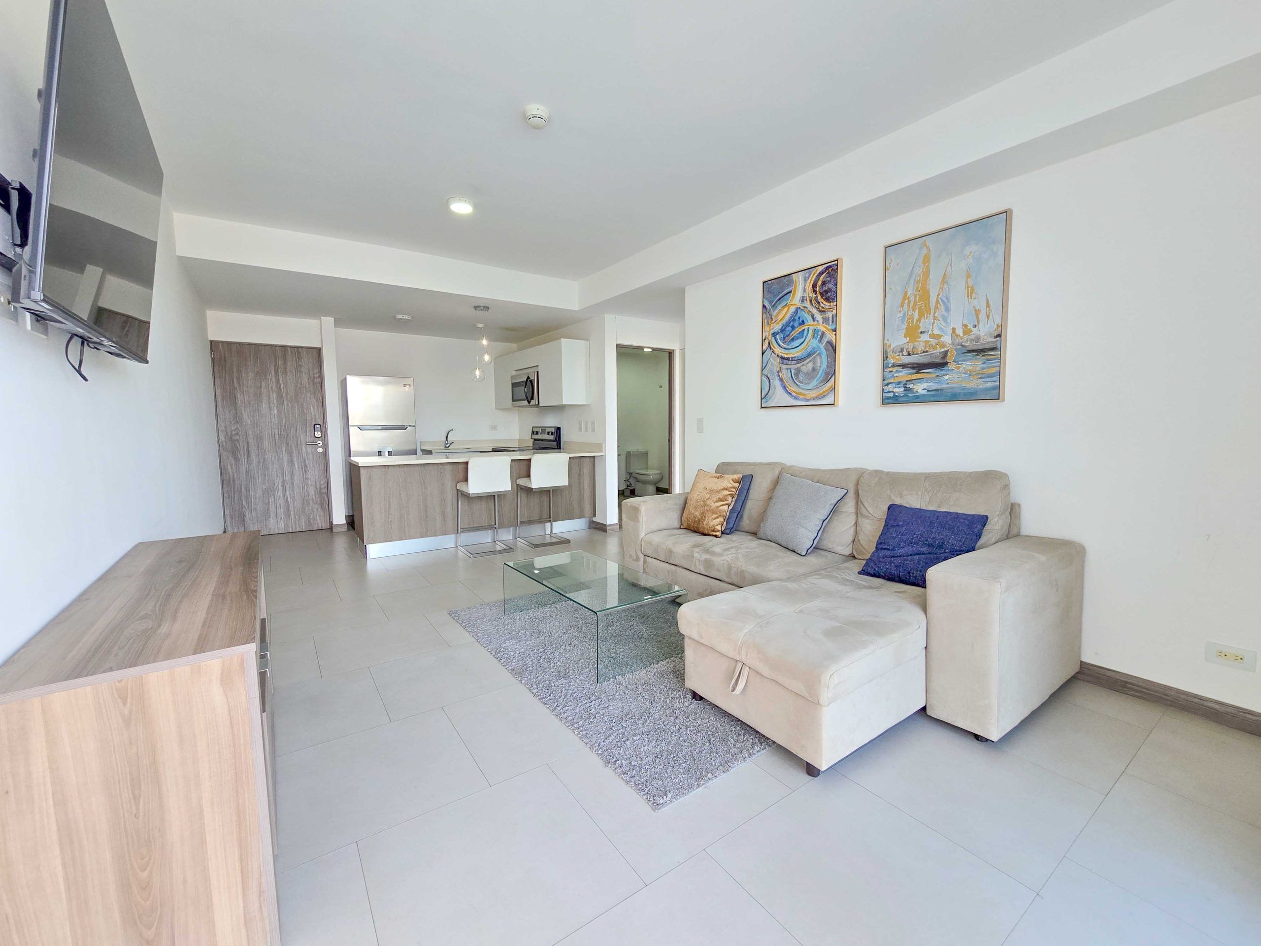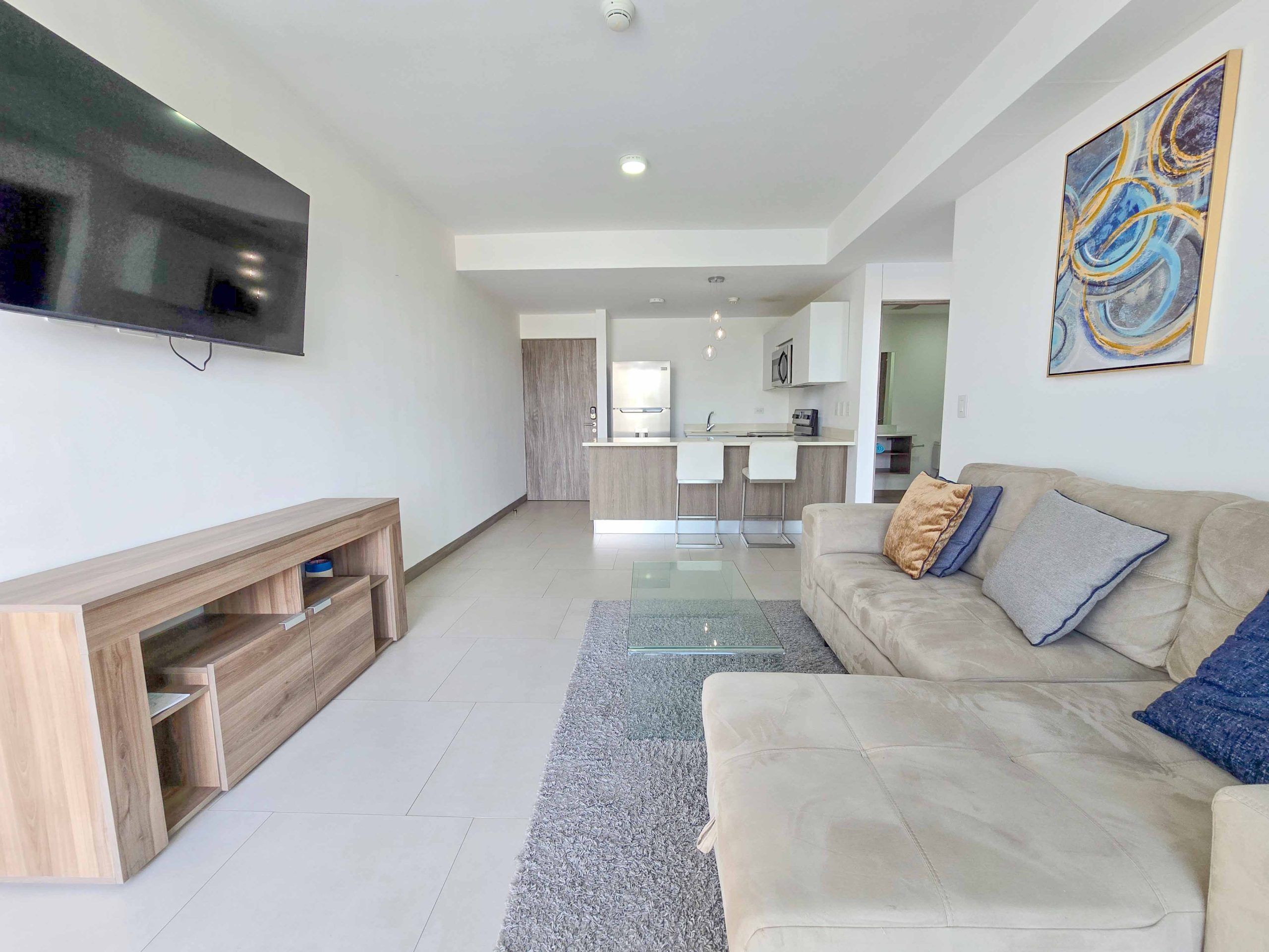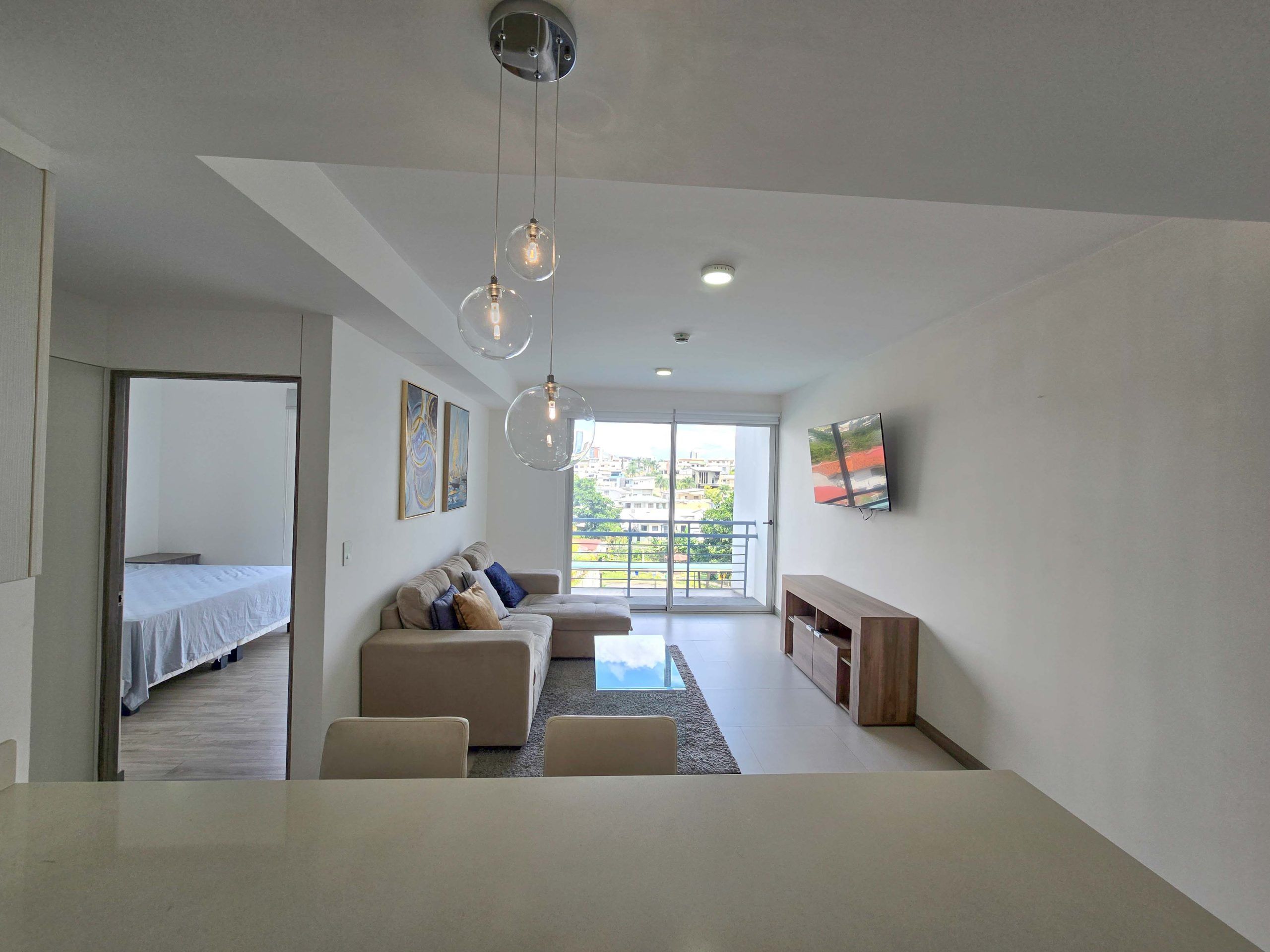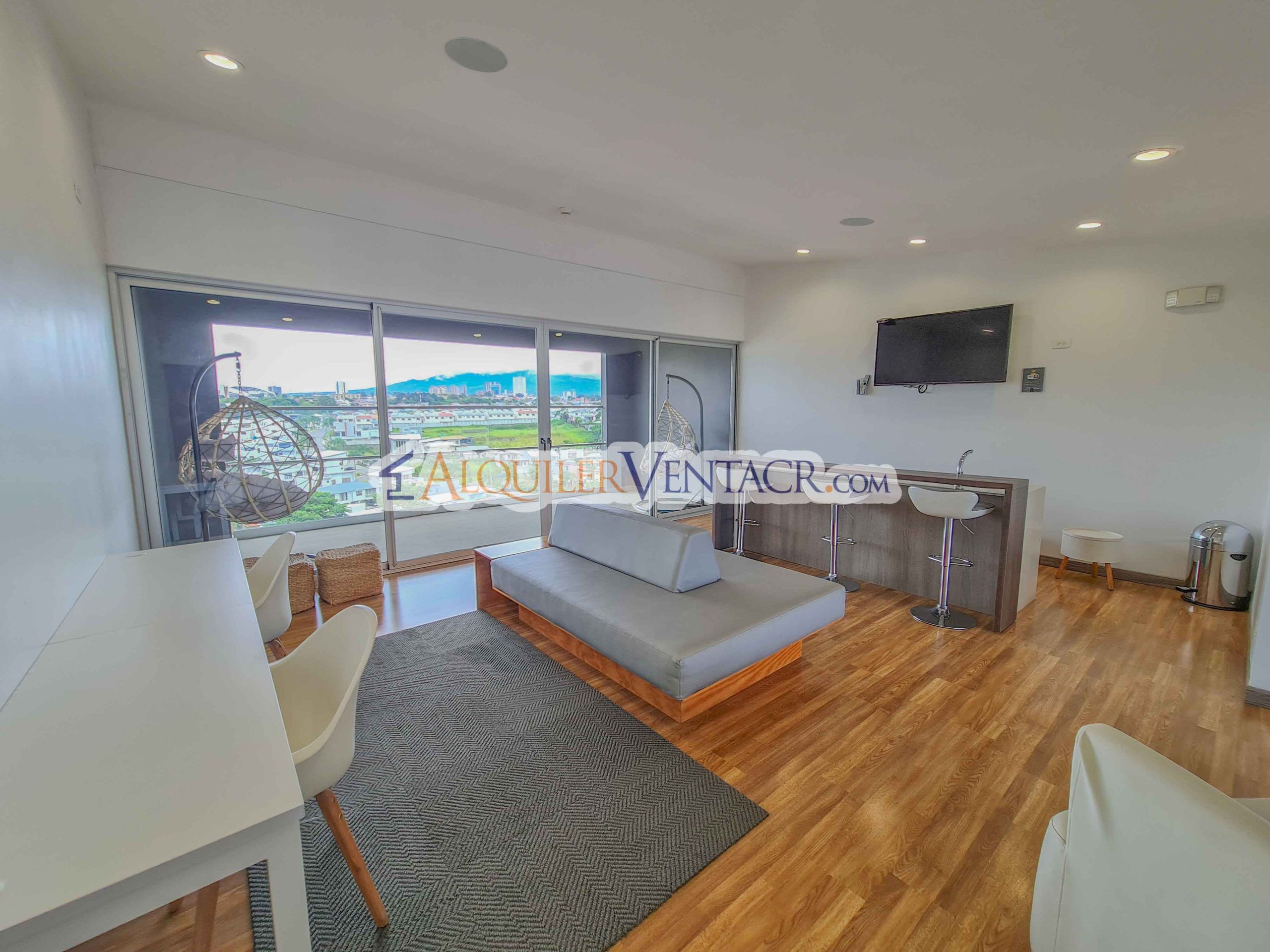 For Sale – Fully furnished apartment with a spacious balcony and beautiful views, located in the modern CAIA condominium in Bello Horizonte, Escazu.