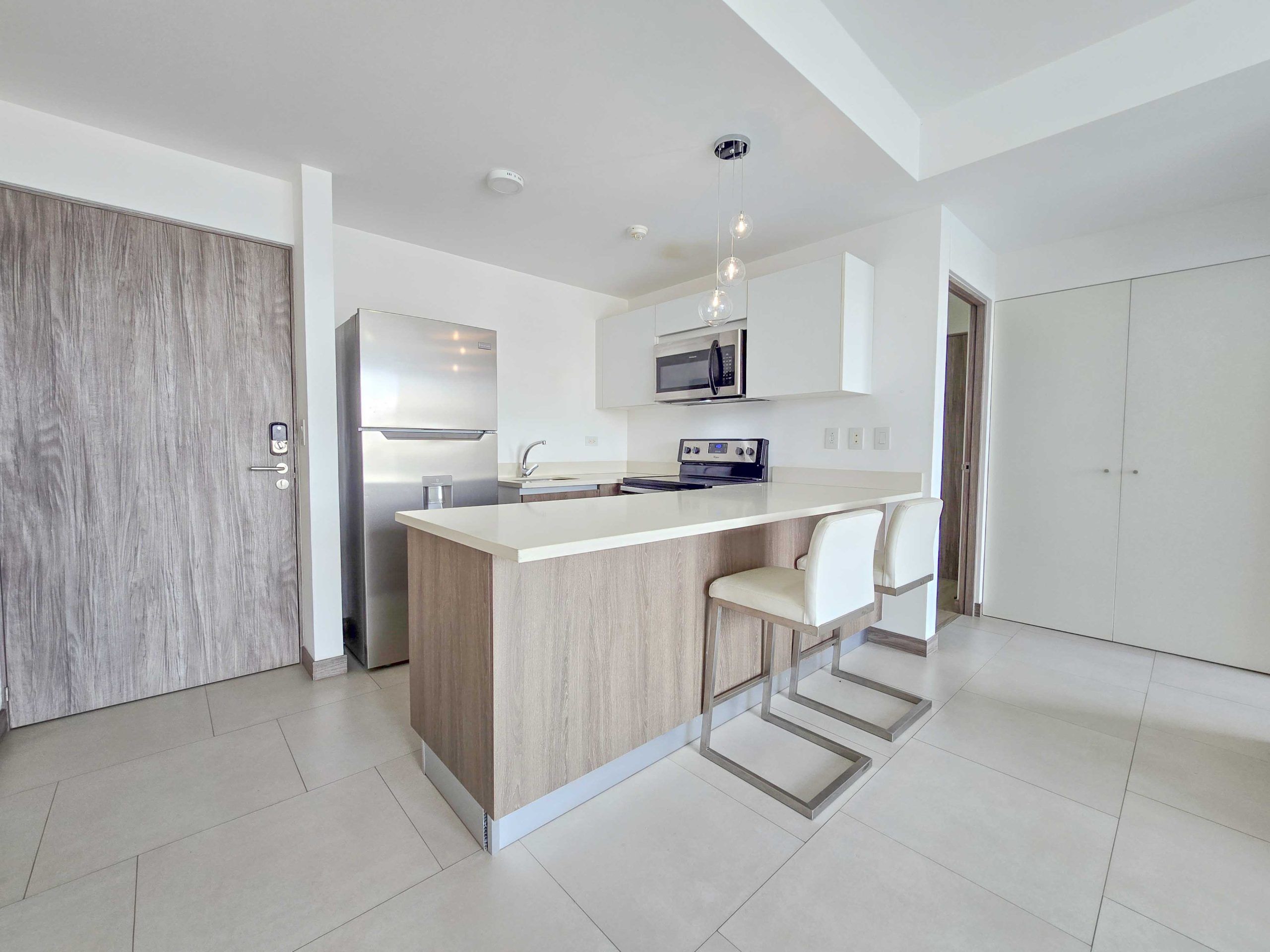 En venta – Apartamento totalmente amueblado con amplio balcón y vista, ubicado en el moderno condominio CAIA, en Bello Horizonte de Escazú.