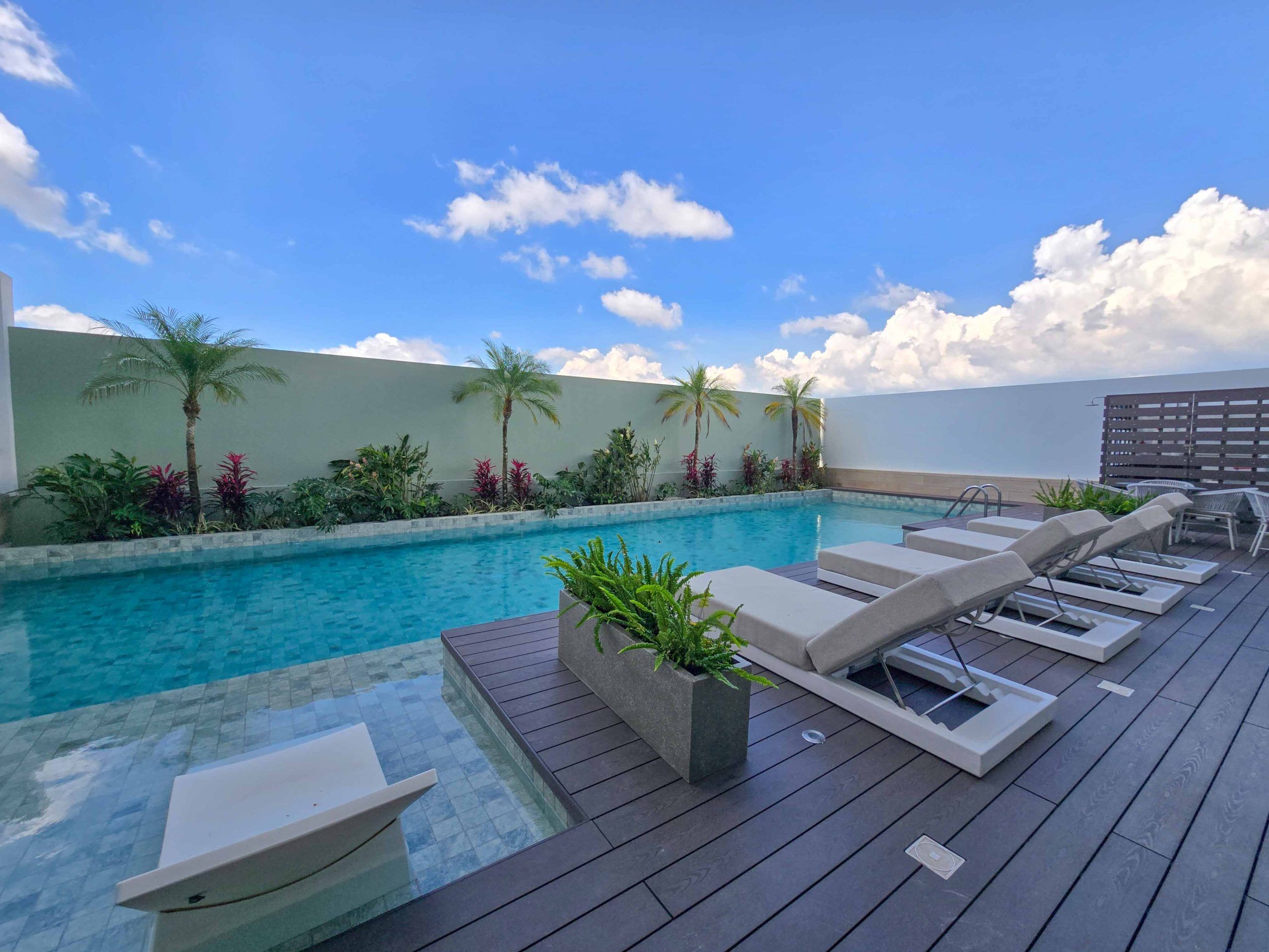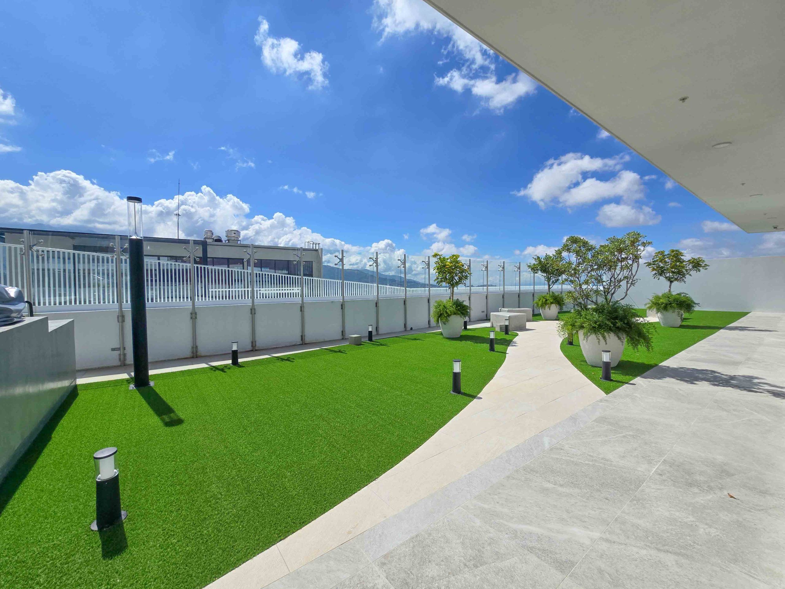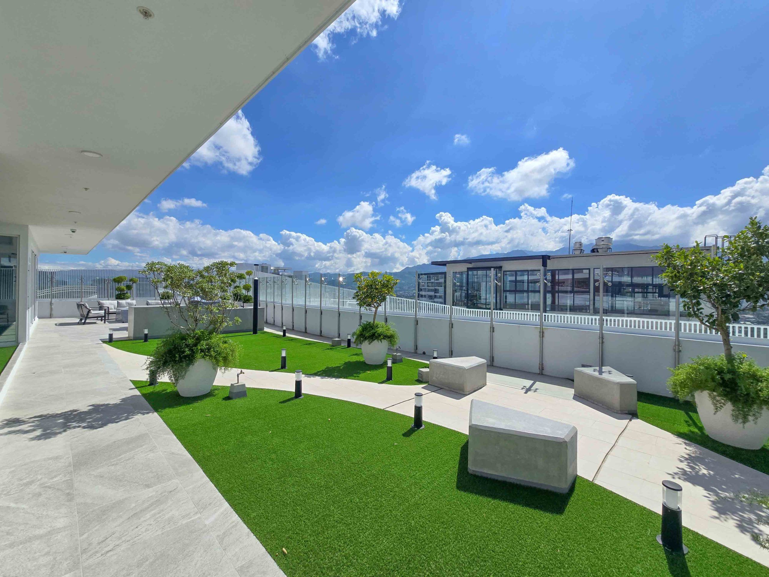 Swimming pool, jacuzzi, sky bar, gym, movie theater, coworking space, BBQ area, fire pits, pet park, playground, lobby, concierge service, and 24/7 security.
