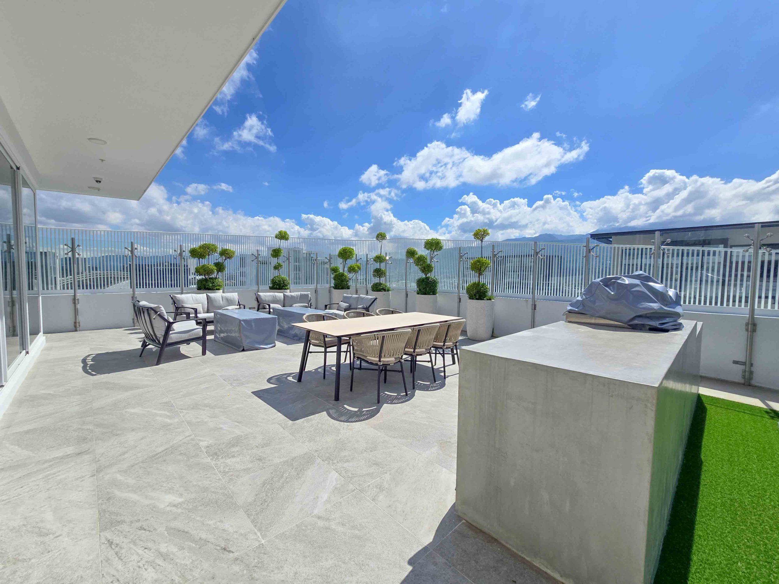 Piscina, jacuzzi, sky bar, gimnasio, sala de cine, coworking, área BBQ, fire pits, pet park, playground, lobby, concierge y seguridad 24/7.