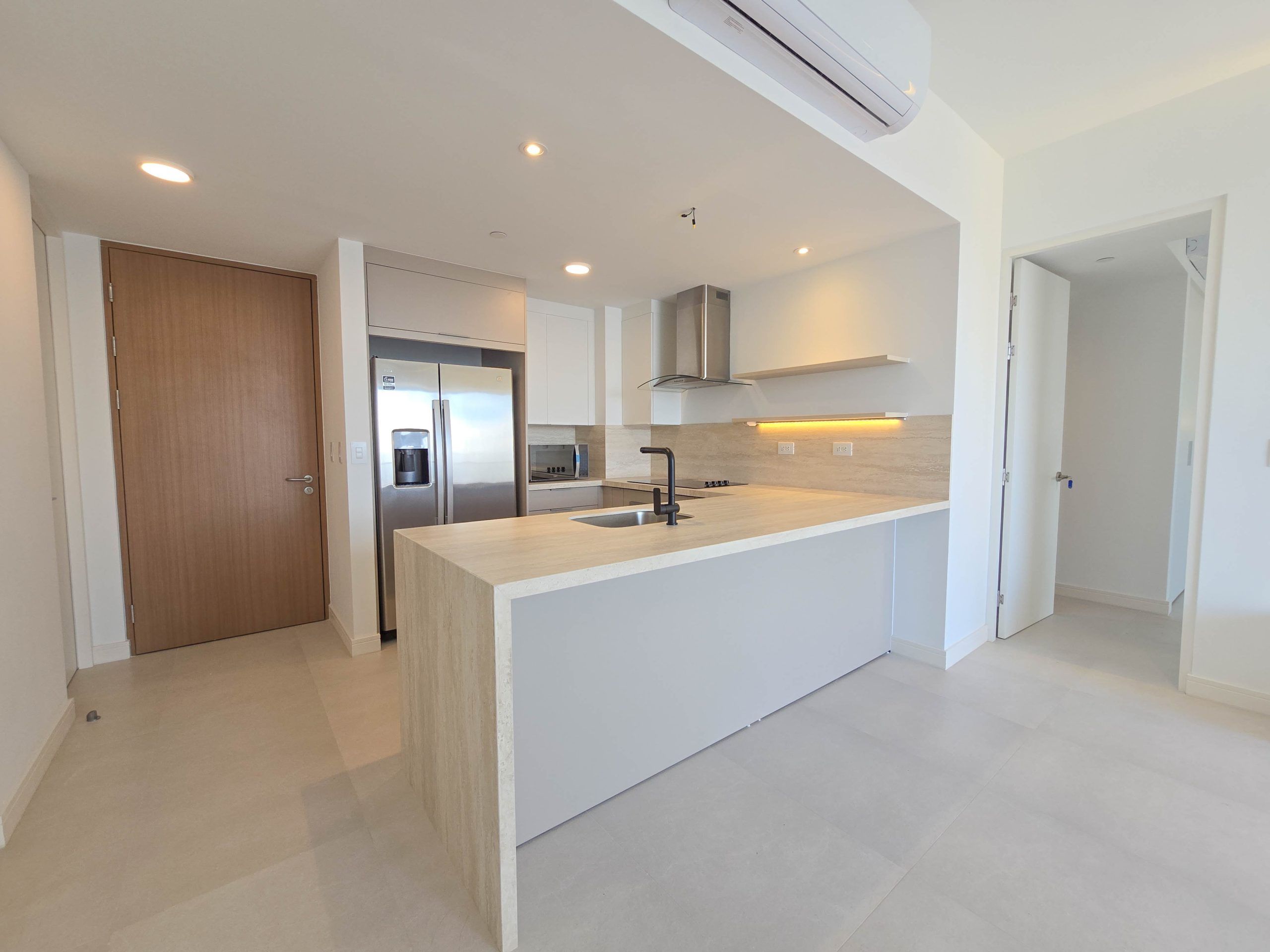 A/C aires acondicionados, cortinas blackout eléctricas, amplio balcón, cuarto de lavado, acabados de lujo, techos altos y doble pared con aislante acústico entre apartamentos.