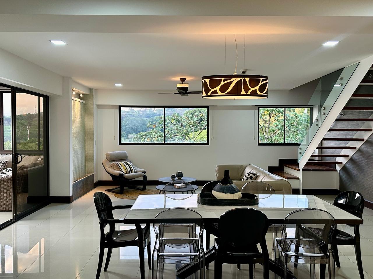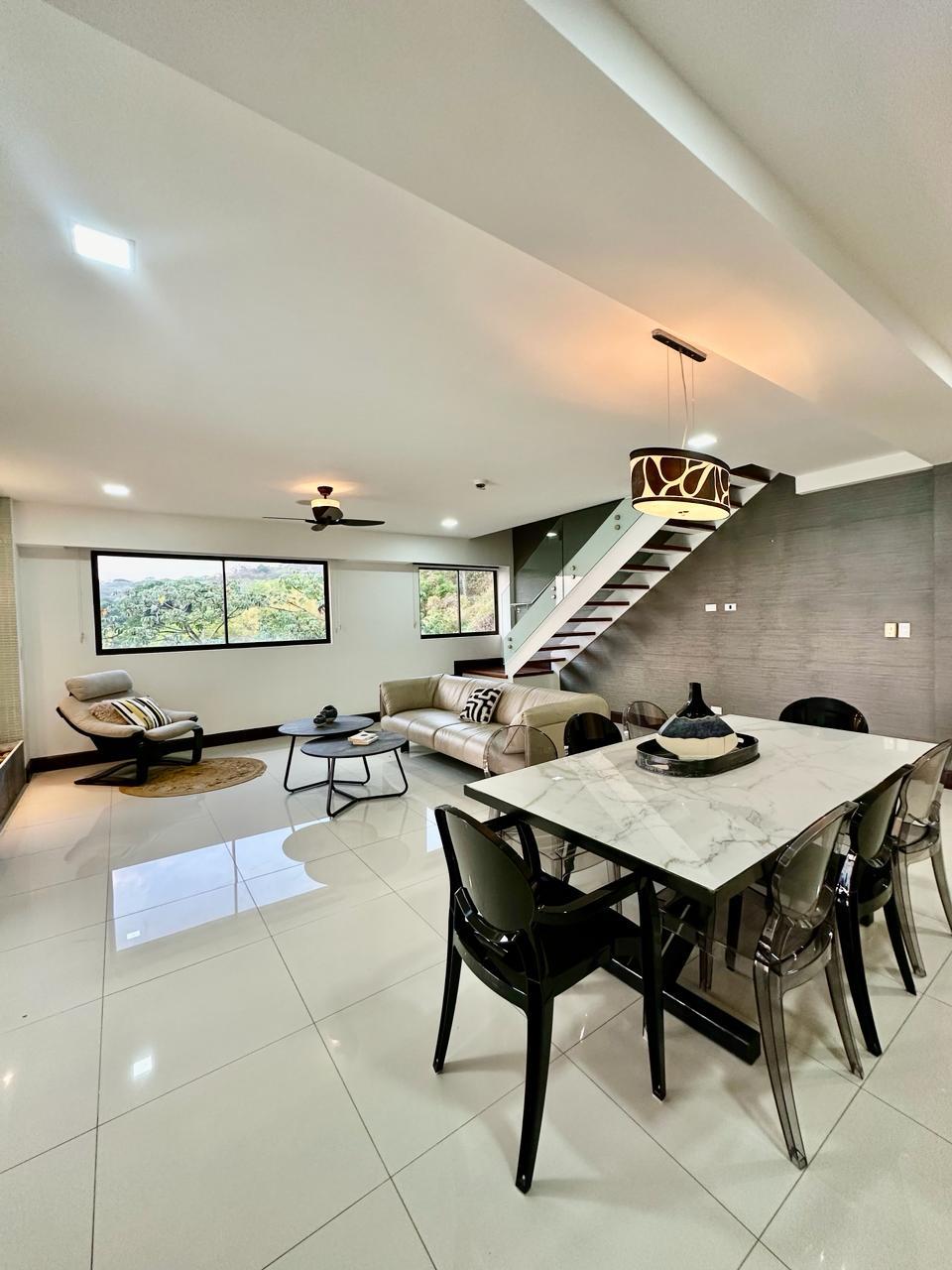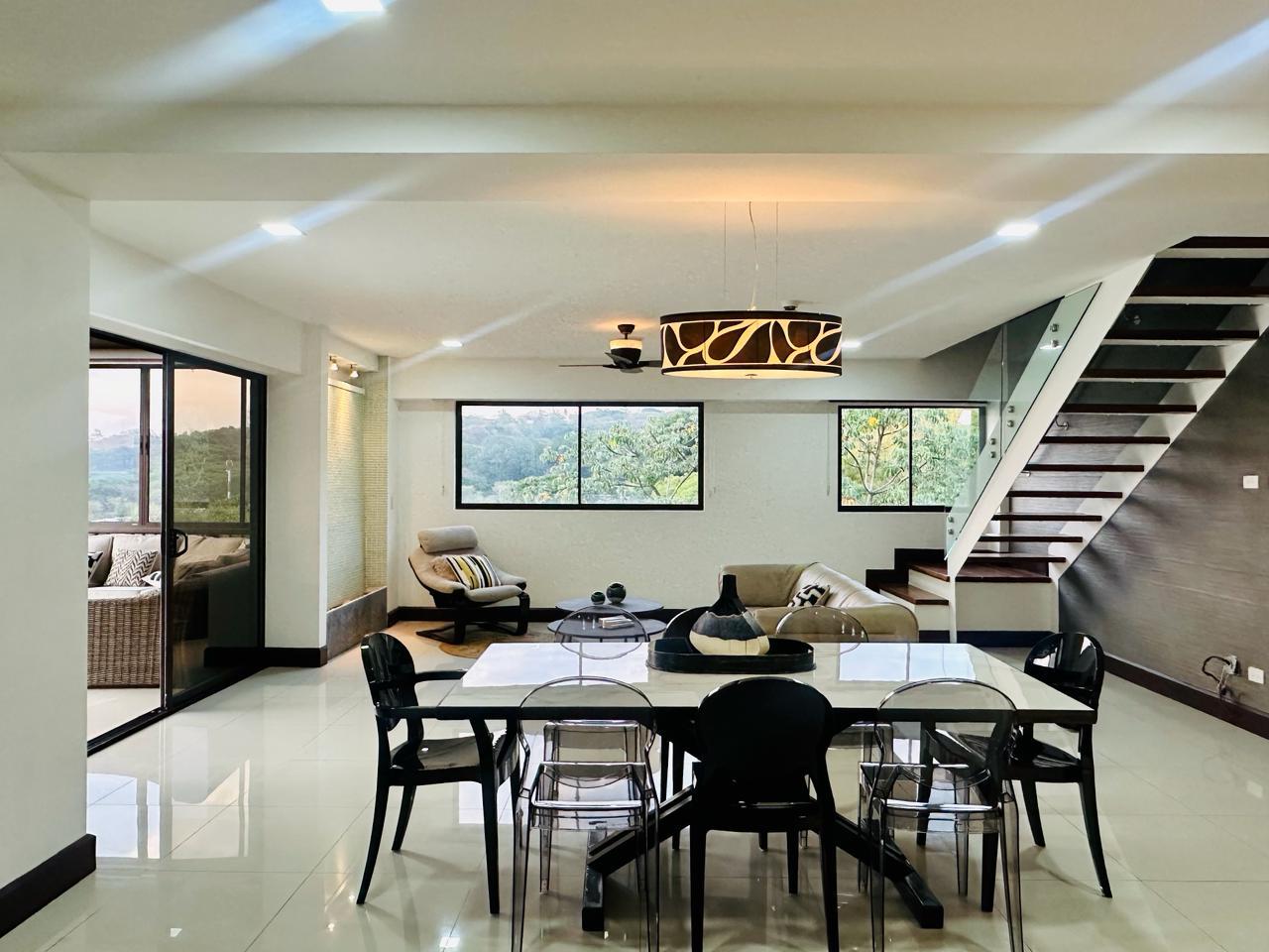 For rent or sale, luxury corner penthouse-style apartment located in Via Nova Condominium, Pozos of Santa Ana. Situated on the 3rd and top floor, this two-level residence offers 300 m² (3,229 sq ft) of construction, including 2 covered parking spaces.
